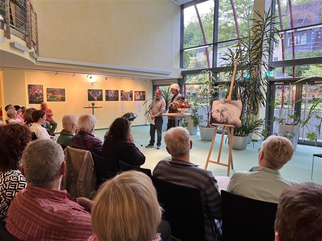 Fotos, Literatur und Musik am 8. Mai 2025 zur Vernissage „Schau!“ in der Rennsteig-Galerie in SuhlSuhl. Eine fulminante Ausstellungseröffnung konnten alle Teilnehmer und Gäste am Donnerstag, dem 8. Mai 2025, ab 19 Uhr in der Rennsteig-Galerie in der Geschäftsstelle der AWG in Suhl, Friedrich-König-Str. 11 erleben. Unter dem Titel "Schau!" präsentieren Mitglieder des Fotoclubs Kontrast Suhl dort bis Ende Oktober eine Auswahl ihrer besten Fotos. Zum Eröffnungsabend gab es dazu live vorgetragen von den Autorinnen und Autoren frische Südthüringer Texte, die eigens zu den Bildern entstanden waren. Mit dieser Gemeinschaftsaktion setzt der Südthüringer Literaturverein eine inzwischen jahrzehntelange fruchtbare Zusammenarbeit mit dem Fotoclub auf besondere Weise fort. Die Idee der Veranstalter war es, statt einer Laudatio mit „kulturwissenschaftlichen Ausführungen“ Südthüringer Dichter zu Wort kommen zu lassen. Die Bilder von 18 Fotoclub-Kontrast-Mitgliedern traten dabei mit poetischen Werken von 9 regionalen Autorinnen und Autoren ins Verhältnis. Vom Literaturverein beteiligt waren Ulrike Blechschmidt, Heidi Büttner, Harald Lindig, Dietmar Hörnig, Iris Friebel, Manuela Ploch, Kerstin Göcking-Reichenbach, Theresa Werner und natürlich Vereinschef Holger Uske. Das künstlerische Gemeinschaftswerk wurde zur Ausstellungseröffnung noch durch musikalische Klangwelten von Jan Eppler auf der Handpan bereichert. ! Nebenstehend das Titelbild der Ausstellung mit einem Foto von Julia Didelot. Unten Eindrücke vom Eröffnungsabend (Fotos: Hahnebach/Kuhrt) Wer die Vernissage verpasst haben sollte, kann dennoch die entstandenen Texte im Zusammenhang mit den Fotoaufnahmen noch genießen, denn sie wurden gekonnt unter den jeweiligen Fotos angebracht.