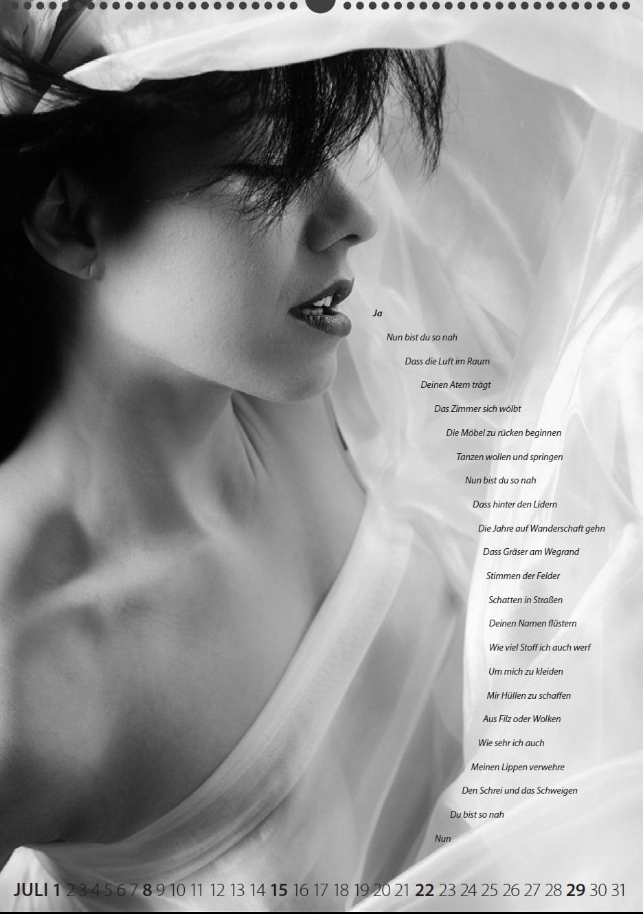 KANN SEIN Dass ich deine Blicke fangen will Riskieren, dass du näher kommst Schmetterlinge fliegen sehen willst Kann sein, dass der Schmuck Dich interessiert, die grobe Wolle Im Haar, am Hals, dass du mich Frieren siehst. Kann sein Dass ich mich zu weit öffne Dass du den Ausblick nicht erträgst Auf Tage und Nächte, auf Jahre, die schon darauf warten Eingeholt zu werden Kann sein, ich bin die Andere, die du suchst Der du aus dem Wege gehst Weil dich Nähe wehrlos macht Ich aber kann Sieh her, sieh weg Die sein, die ich will |