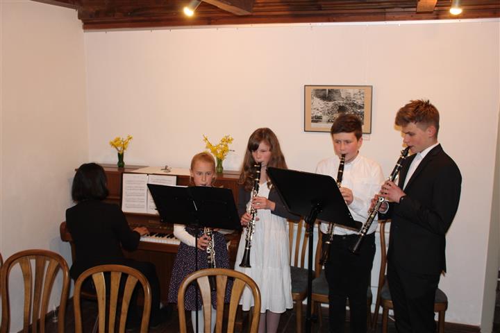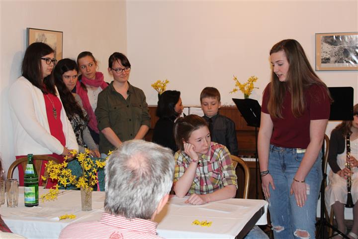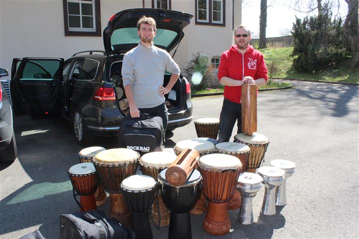 Die Abschlusslesung im Baumbachhaus fand vor voll besetztem Hause statt. Die musikalische Begleitung oblag diesmal Klarinettenschülern der Meininger Musikschule unter Leitung von Wen-Chen Theile (Bild unten). Die Werkstatttage wurden am Sonntag abgerundet durch den Teil 2 des im Vorjahr begonnenen Trommel-Workshops unter Leitung von Maximilian Strobel und Sören Georgy (untere Bildzeile rechts). Der in diesem Jahr zeitige Frühling in der Rhön und das Engagement aller Beteiligten ließen das literarische Wochenende wieder zu einem Höhepunkt im Vereinsjahr und im literarischen Leben der Region werden. |