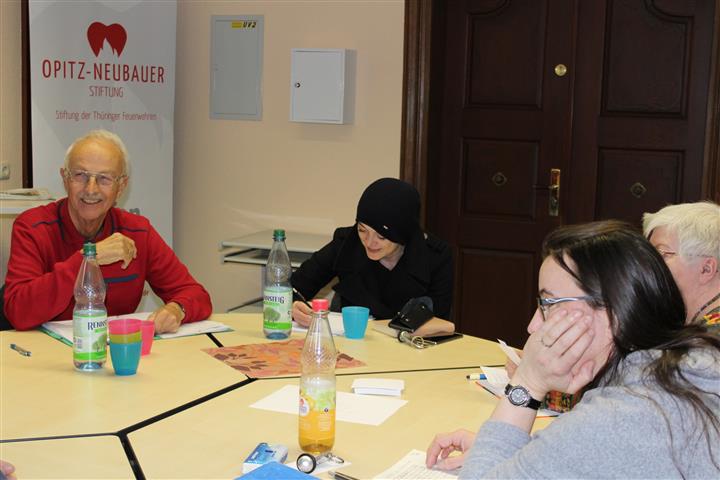 In bewährter Weise wirkten für die Lyrikgruppe (Bilder links und rechts) Nancy Hünger als Seminarleiterin und für die Prosagruppe (Bilder nächste Zeile) André Schinkel als Seminarleiter, die zugleich als Anreger, Kritiker und Lektoren agierten. Unter Leitung von Ulrike Blechschmidt gelangen auch der Jugendgruppe mit diesmal sechs jungen Teilnehmerinnen tolle Schreibergebnisse. Die 2017er Schreibwerkstatt stand unter dem Motto "Hurra, 17!", was zu Zahlenspielen und historischen Ausflügen Anlass gab. |