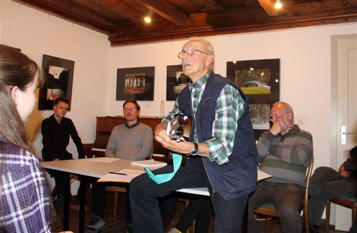 Der Suhler Liedermacher Bernd Friedrich beim Auftritt im Baumbachhaus. |