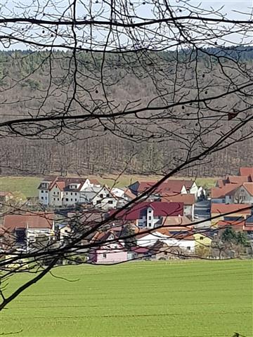 Die Teilnehmer der Werkstatt ´23 beim Abschlussbild. Foto: J. Körber | Blick auf Bernshausen mit der Hotelanlage. Foto: A. Uske | ||