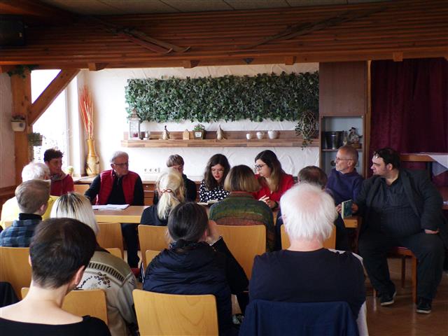 Aufmerksam verfolgten alle die Beiträge der Südthüringer Schriftsteller und Vereinsfreunde. Hier liest Annalena Vasters aus Suhl, derzeit Studentin in Wien. Fotos: Literaturverein und Jürgen Körber (vielen Dank!) |